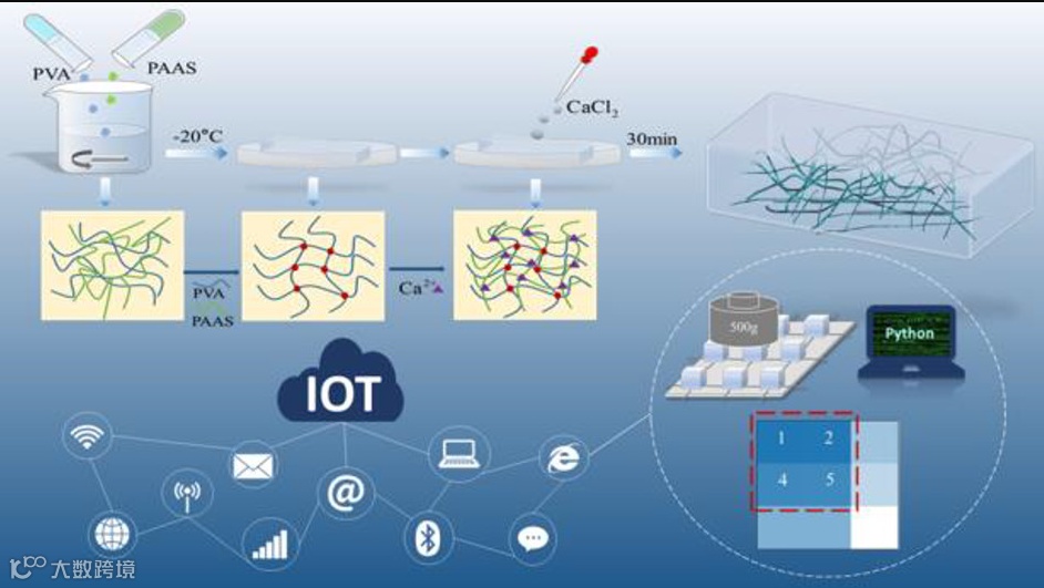 9.田野团队通过冷冻交联和离子螯合,仅利用聚乙烯醇、聚丙烯酸钠和CaCl2这三种成分制备了一种导电水凝胶传感器PPC。由于独特的离子簇网状结构,PPC水凝胶传感器在不添加高导电性材料的情况下,具有约5.2 S/m的高导电性和优异的应变传感性能。PPC水凝胶传感器在冰冻和水下条件下也能保持导电性,并在水下环境中抗膨胀,使其能够在水下长时间使用(超过15天)。PPC水凝胶应变传感器可作为柔性电极用于心电图(ECG)和肌电图(EMG)检查,并灵敏地监测人体活动以及识别笔迹。此外,还设计了一个基于python的可视化程序,结合PPC水凝胶传感器阵列来实现用于远程物联网监测的压力传感数字图像映射。PPC水凝胶传感器作为一种柔性生物安全传感器,在智能传感、物联网甚至物联网系统等领域具有潜在的应用前景。该成果以“High Performance Conductive Hydrogel for Strain Sensing Applications and Digital Image Mapping”为题发表在ACS Applied Materials & Interfaces期刊上,博士生刘若楠为第一作者,田野副教授为通讯作者。