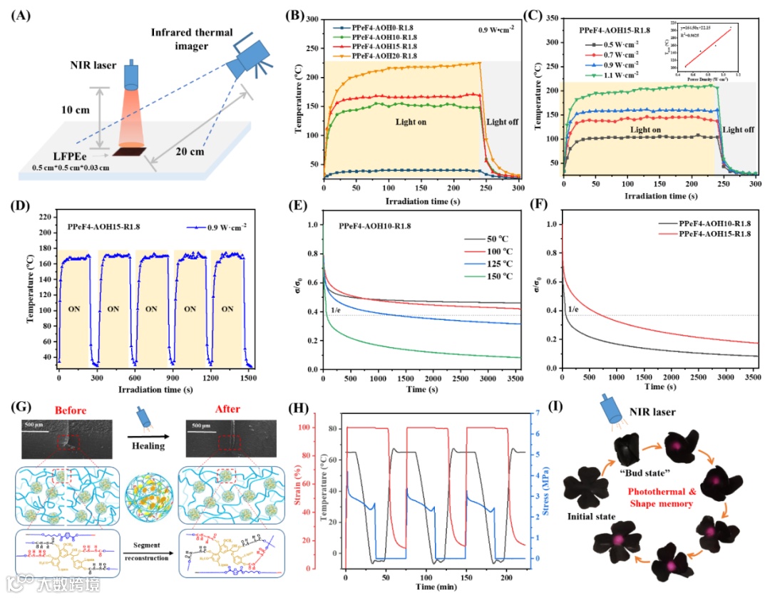 图3 LFPEe的光热性能、自愈合现象及形状记忆功能