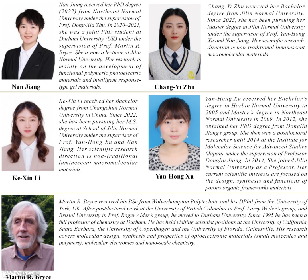 该论文以吉林师范大学为第一单位,姜楠博士为第一作者,吉林师范大学许彦红教授、英国杜伦大学MartinR. Bryce教授为通讯作者。其他作者包括吉林师范大学硕士研究生李可欣和朱昌怡。美国化学会(ACS)把这项工作推荐为“ACS Editors' Choice”特色文章在美国化学会网站头条新闻展示,并向公众永久免费开放浏览。ACS Editors' Choice®由美国化学会80多本同行评审期刊的编辑们推荐,每天精选一篇具有重大科学意义的文章,入选率低于1%。