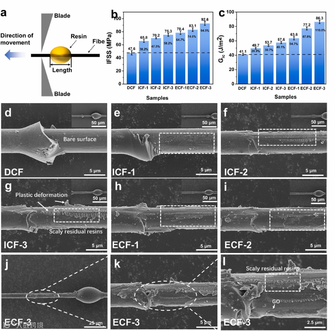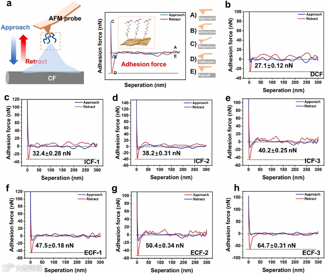 50多年来,碳纤维增强聚合物复合材料(CFRP)因其轻量化、高力学强度等特性已经被广泛应用于航空航天、汽车、铁路运输、海洋和风能等领域。强韧平衡的CFRP已被证实有利于延长其服役寿命。除了设计高强韧的树脂基体外,碳纤维和树脂基体之间的强韧界面设计往往被忽略。由于跷跷板效应,同时提高强度和韧性一直是一项挑战。针对该问题,该团队在前期开展了大量新型强韧界面相的构筑工作,,并建立了特色的界面相结构微观表征技术,如界面粘附力微观测量技术(Chemical Engineering Journal, 2020, 388: 124255;Advanced Composites and Hybrid Materials, 2024, 7(2): 72)、纳米红外Mapping(Composites Science and Technology, 2018, 163: 26–33)、拉曼Mapping(ACS Appl. Mater. Interfaces, 2021, 13, 55633−55647)、界面相聚组分分布分子模拟技术(Composites Part B 2023, 257, 110674),实现了界面强度和韧性的同步提升。