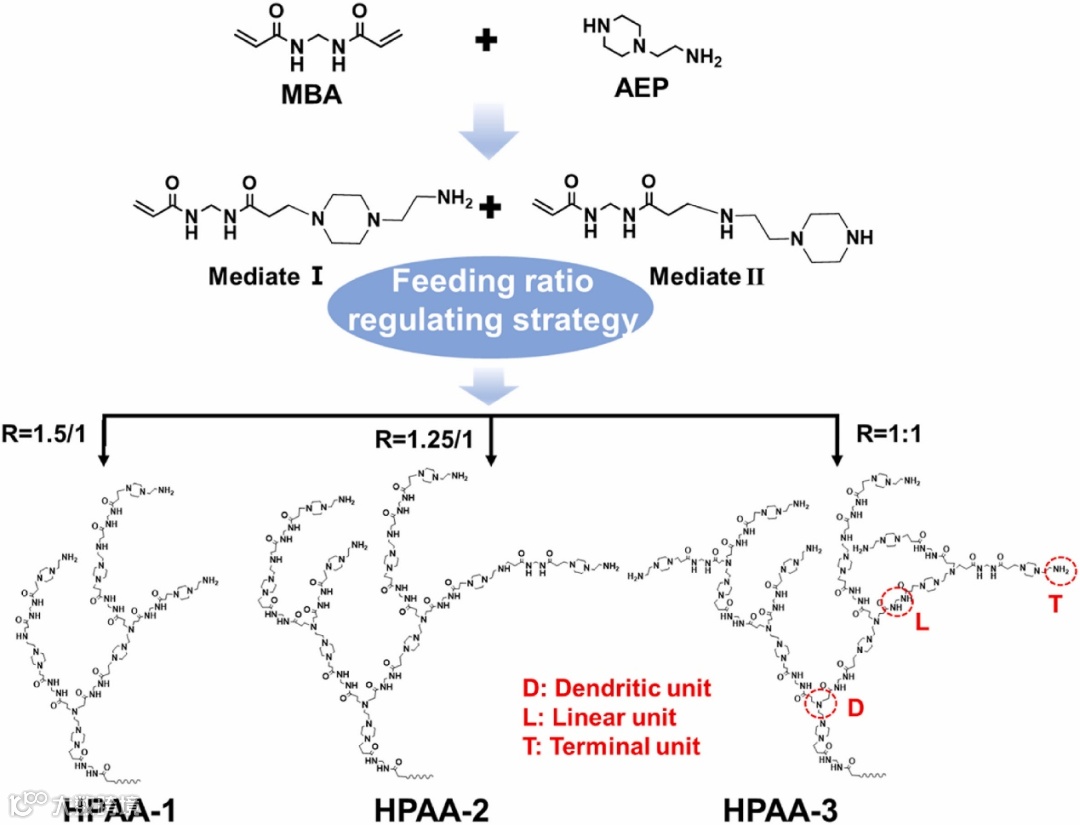 图2 不同支化度超支化聚酰胺胺的合成路线示意图