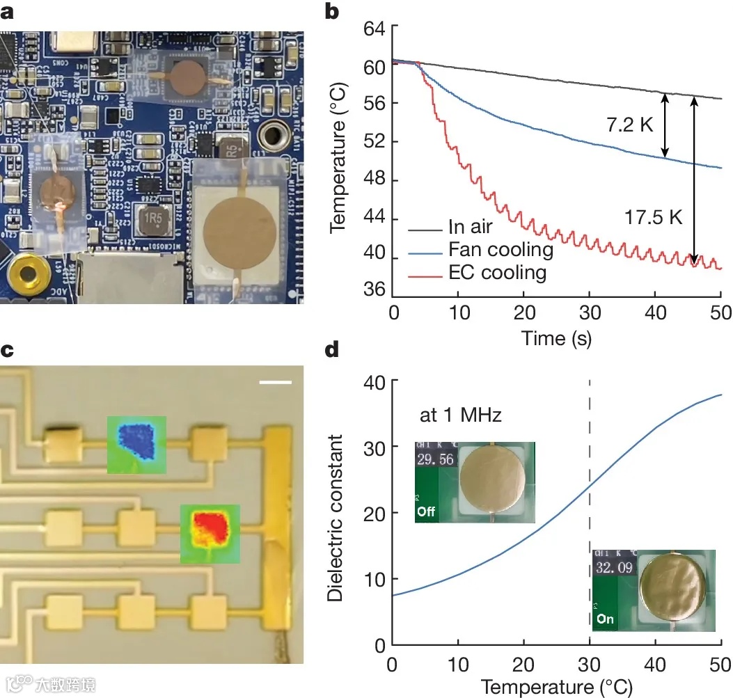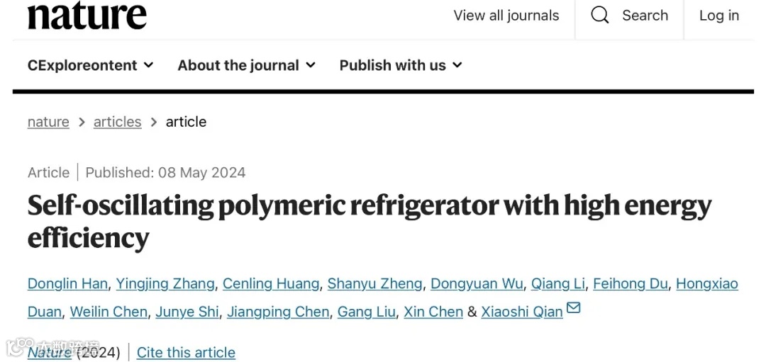 5月8日,上海交通大学机械与动力工程学院前瞻交叉研究中心钱小石教授课题组在Nature上发表“Self-oscillating polymeric refrigerator with high energy efficiency”的论文。研究人员结合弛豫铁电高分子材料在电场作用下的电致熵变(电卡效应)和电致伸缩效应,设计与制造了“自驱动”的高分子制冷薄膜系统。该系统无需外加驱动装置,而是优化了高分子制冷工质本身的机电耦合效率,设计了电-机械形变与电卡制冷效应协同驱动的方法,实现了轻量化、高能效比、高精度和智能化的制冷效果。钱小石教授为论文通讯作者,博士研究生韩东霖和硕士研究生张楹婧为共同第一作者。