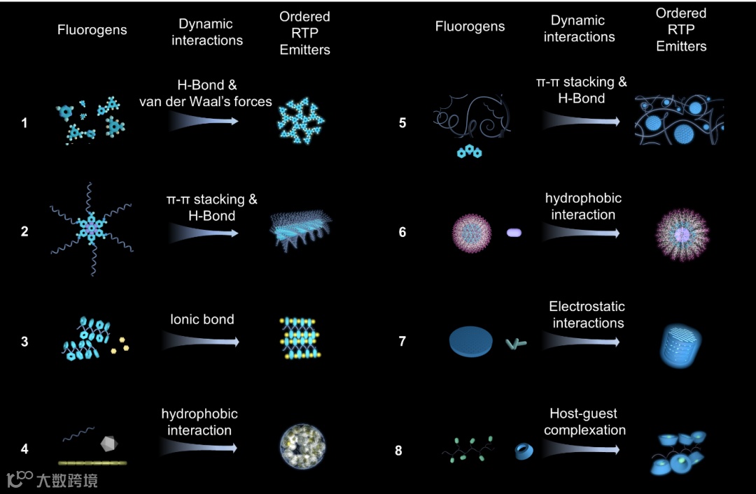 图5:氢键和π-π作用等驱动荧光团形成有序RTP体系。