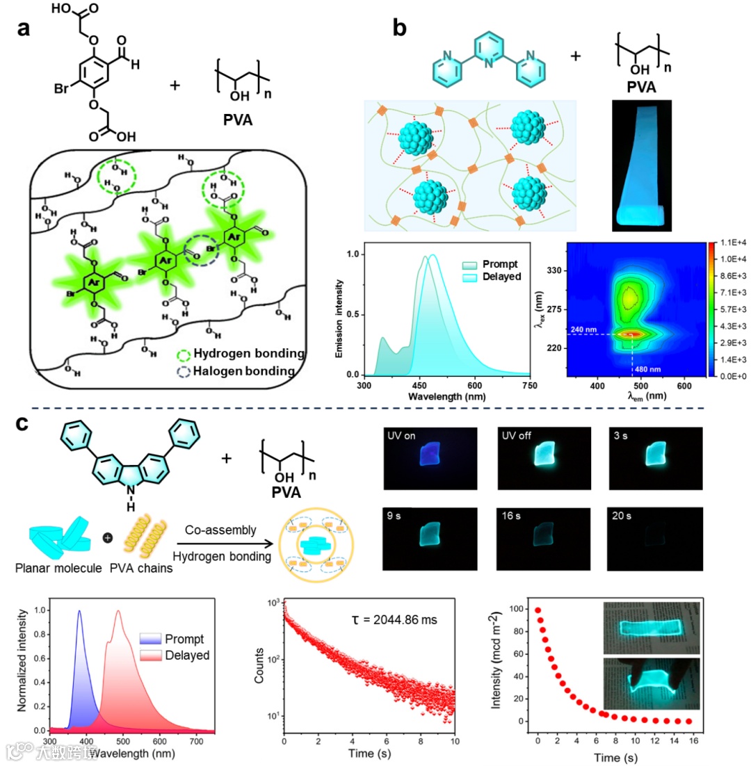 图3:利用超分子动态相互作用构建紧密有序的RTP发光体系。