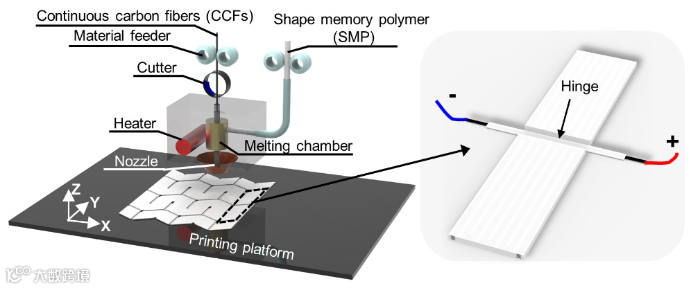 图1 连续纤维增强形状记忆聚合物电热折纸复合材料的4D打印