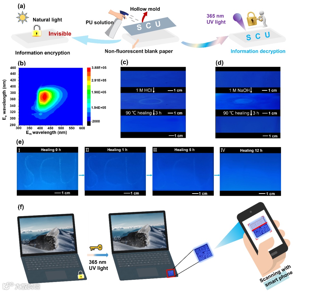 图4 机械/化学损伤自报告和可视化修复过程及其信息防伪