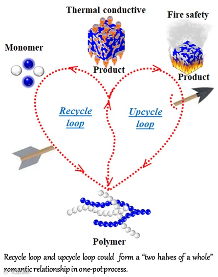 现有聚合物材料在消费后回收(recycle)技术效率不高,主要是因为它难以保持材料的初始性能,因此迫切需要开发更高效地回收高分子材料的新方法。在这种情况下,“升级改造”(upcycle)的概念是一个有吸引力的替代方案。“升级改造”也称之为“升级回收”、“上循环”, 有别于传统的聚合物材料回收再利用。 “升级改造”通常是指将无用及不需要的产品,转化为质量更好或具有环境价值的新材料或产品。然而,“升级改造”仍存在新的挑战和问题,如合成方法复杂且成本高昂、新废物的产生以及循环材料的不可回收。因此,迫切需要一种简单、直接、有效的“升级改造”方法解决这一问题。