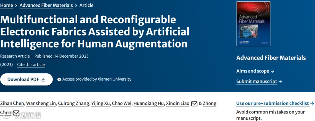 期刊:Advanced Fiber Materials,IF 16.1,一区TOP