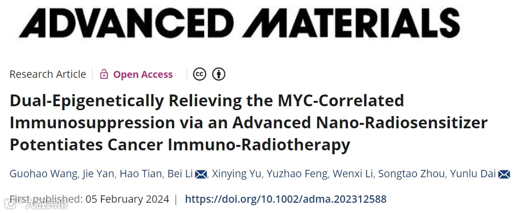 Wang, G., et al. Dual-Epigenetically Relieving the MYC-Correlated Immunosuppression via an Advanced Nano-Radiosensitizer Potentiates Cancer Immuno-Radiotherapy. Adv. Mater., 2024, e2312588.
