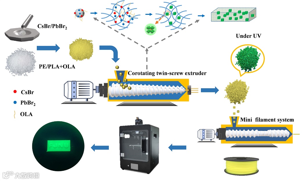 图4 CsPbBr3@PE5/PLA5复合材料的能带调控及3D打印
