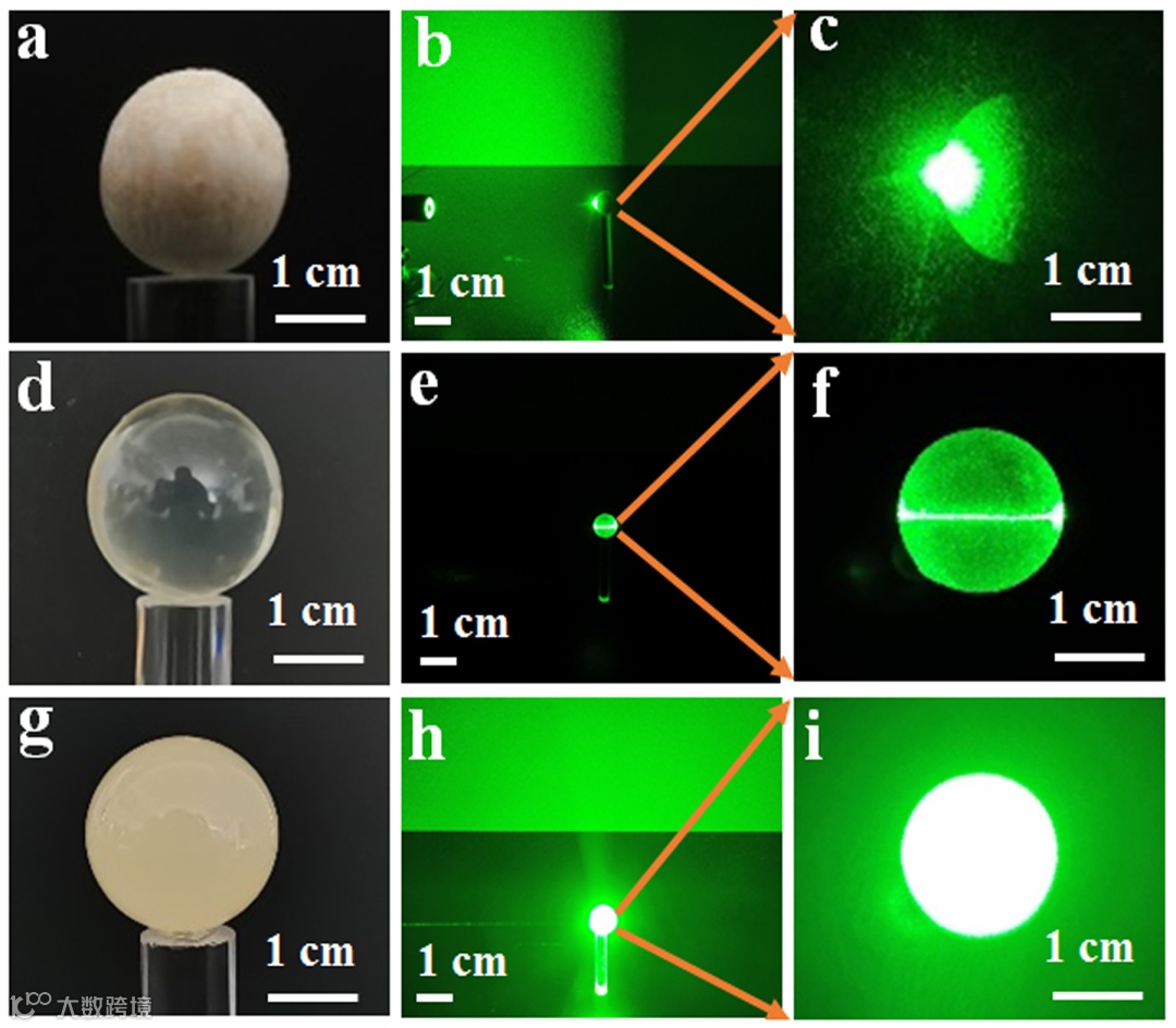 正是在中西方哲学思想的指引下,研究小组认为:雾度作为一个合乎理性的事实存在,如果无法将其降至最低,是否可以逆向提高其雾度,掌握高雾度透明木材的特性,并为其探索新的应用领域,有望解决困扰学界多年的雾度问题,并为透明木材打开一个全新的研究领域。常规透明木材是将折射率与纤维素匹配的高分子树脂浸入脱除木质素(或脱除木质素发色、助色等基团)的木材中,固化而成。而研究小组则反其道而行之,提出折射率不匹配策略,创制激光木材,并探索其在固态激光照明领域的应用。