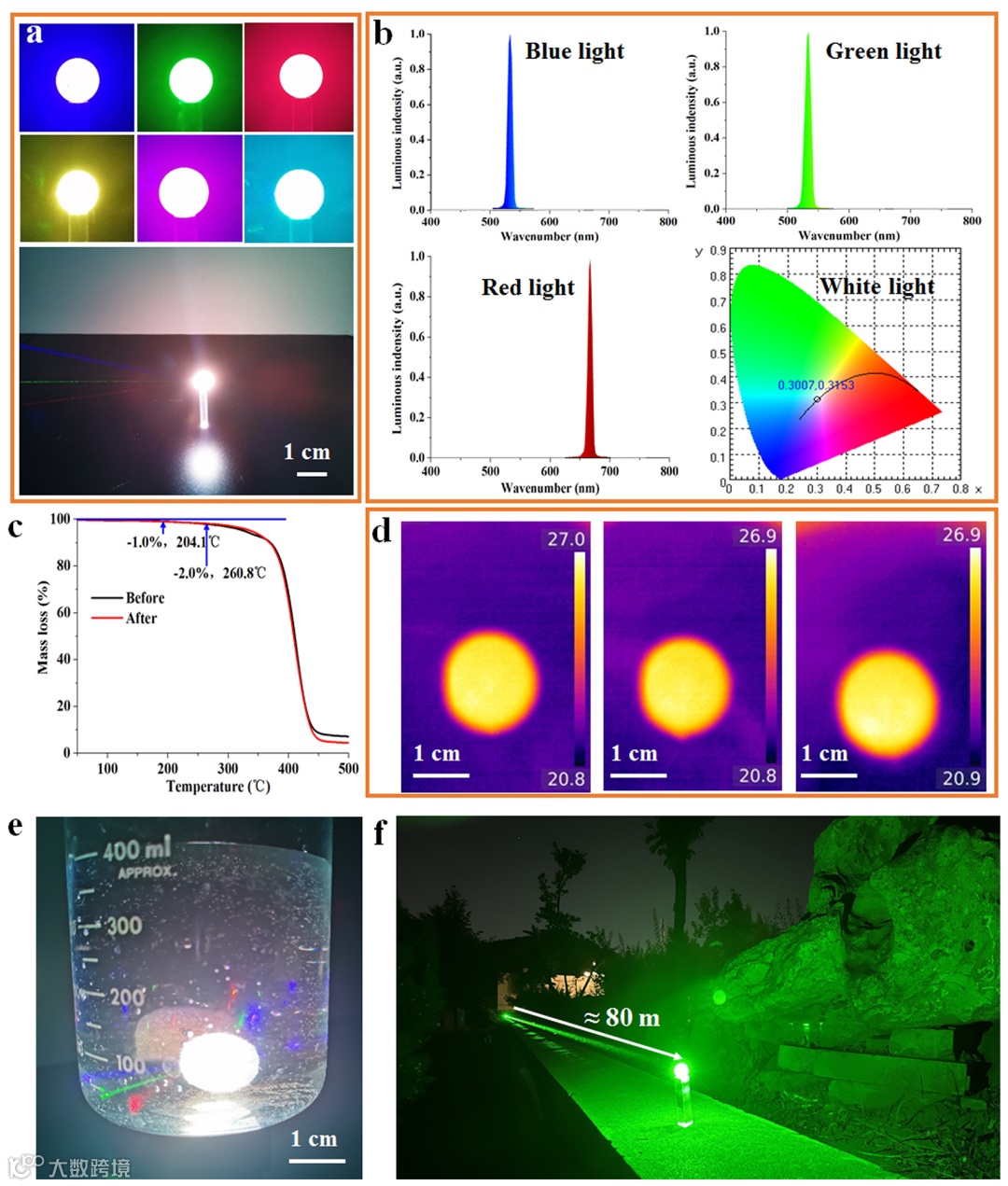 图6 激光木材实现全色域光照明、水下照明以及远距离照明