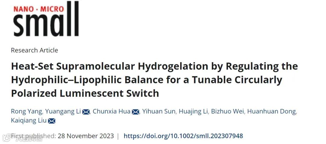 超分子水凝胶是由两亲性胶凝剂通过分子间相互作用自组装而成,由于其独特的性质而备受关注,通常情况下表现出正常的相变行为即加热溶解冷却成胶。随着该领域的迅速发展,出现了一种特殊类型的水凝胶——热致超分子水凝胶,这种热致超分子凝胶表现出完全相反的相变行为,即高温成胶而低温溶解。迄今为止,所有热致凝胶的例子都是实验中偶然发现的,对热致超分子水凝胶的理性设计仍然具有很大的挑战。该论文提出一种通过调节胶凝剂分子亲疏水平衡(HLB)构建热致水凝胶的新策略,并成功制备了可逆热致超分子水凝胶。这种策略有望成为制备具有热致行为的功能软材料的新途径。