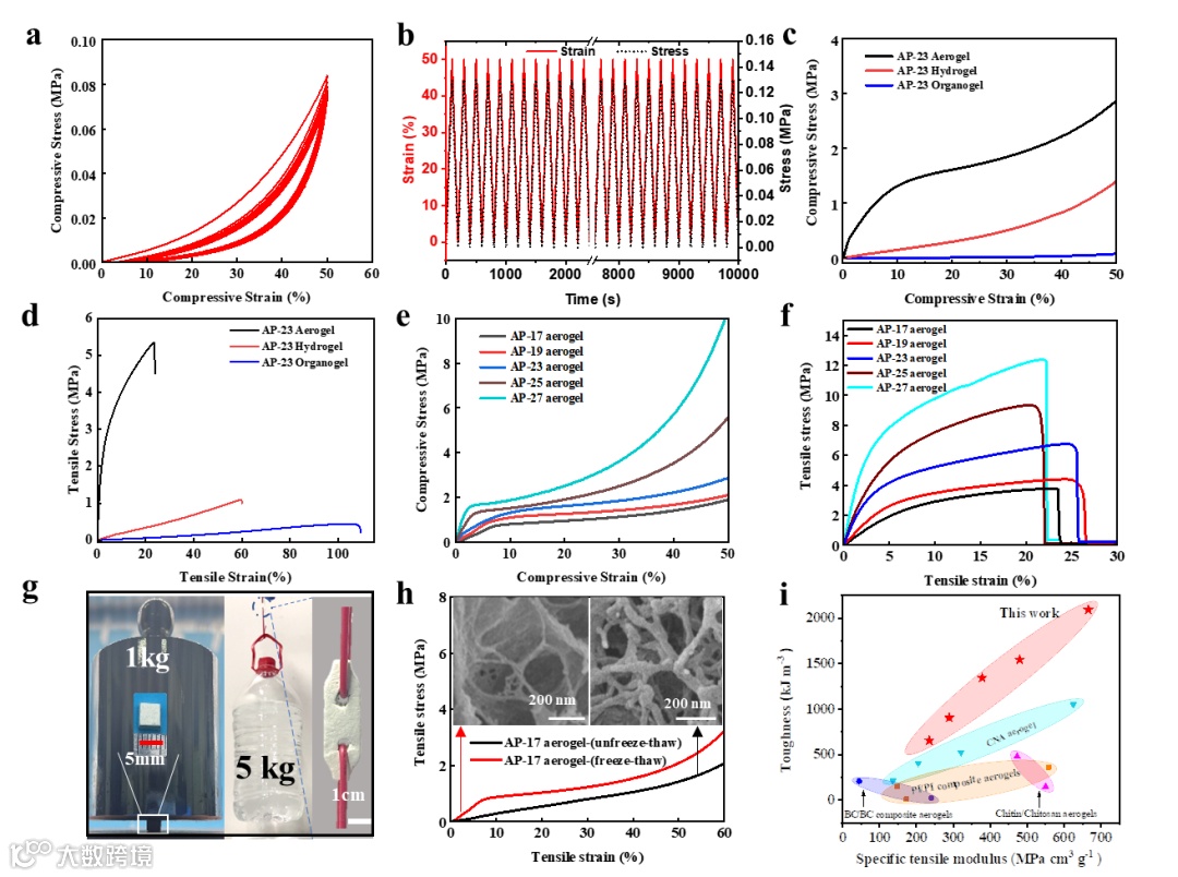 图3. AP有机凝胶、水凝胶和气凝胶的力学性能比较。
