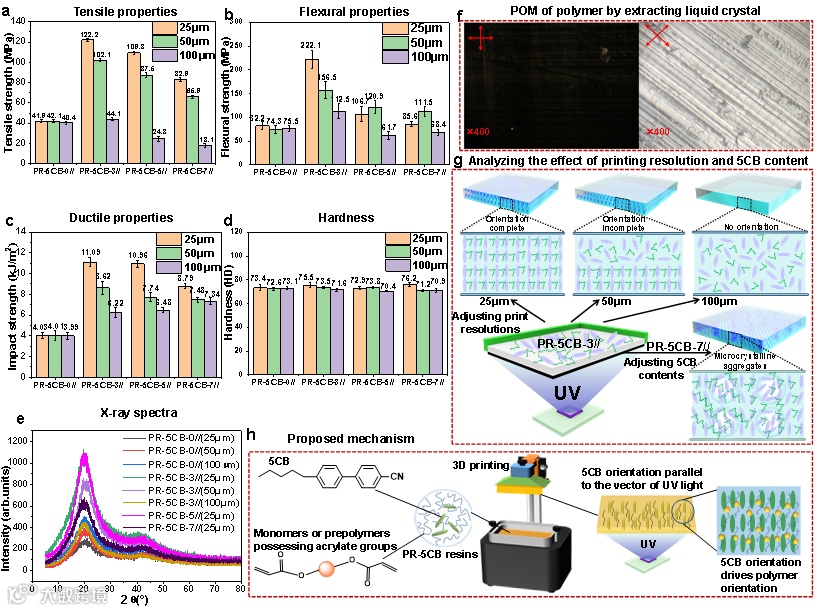 图2通过 SLA 3D打印实现 PB-5CB 树脂的光定向。