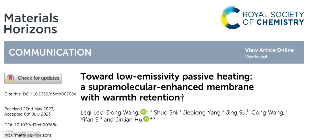 Materials Horizons:一种具有保暖性的超分子增强膜