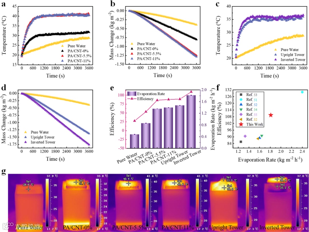 图5 3D打印聚酰亚胺气凝胶的太阳能水蒸发应用探索
