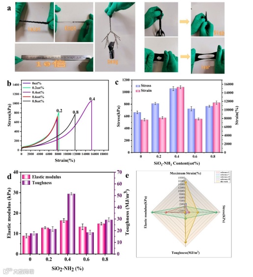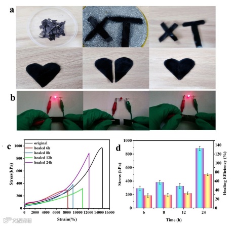 在微电子技术迅速发展的时代,多功能可穿戴设备引起了广泛的关注。水凝胶作为一种三维软材料,具有类似于生物组织的兼容性和可供调节的理化性质,在细胞载体、人工电子皮肤和可穿戴设备等方面具有广阔的应用前景。然而,传统化学交联而成的水凝胶通常质地较脆,无法经受较大的形变,且功能单一,无法满足水凝胶应用的条件。因此,开发出一种多功能性的强韧导电水凝胶具有十分重大的意义。