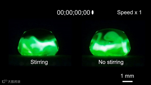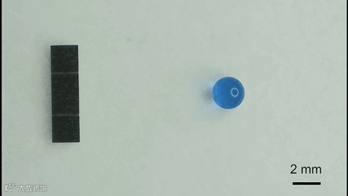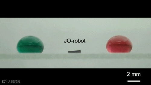 动图2. 磁响应双面神折纸机器人用于实现液滴快速混合。