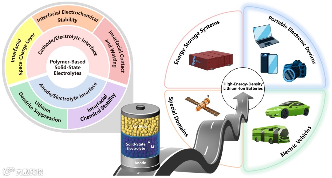 近年来,锂电池已被广泛应用于移动电子设备,电动汽车,大型储能装置和卫星等特殊领域。其中,移动电子设备和电动汽车的快速发展使得人们对锂电池的能量密度和安全性需求不断增加。与使用传统液态电解液的电池相比,使用聚合物电解质的固态电池具有更高的安全性与能量密度。然而,其内部的电极/聚合物电解质界面仍存在许多问题(图1),影响电池的应用。