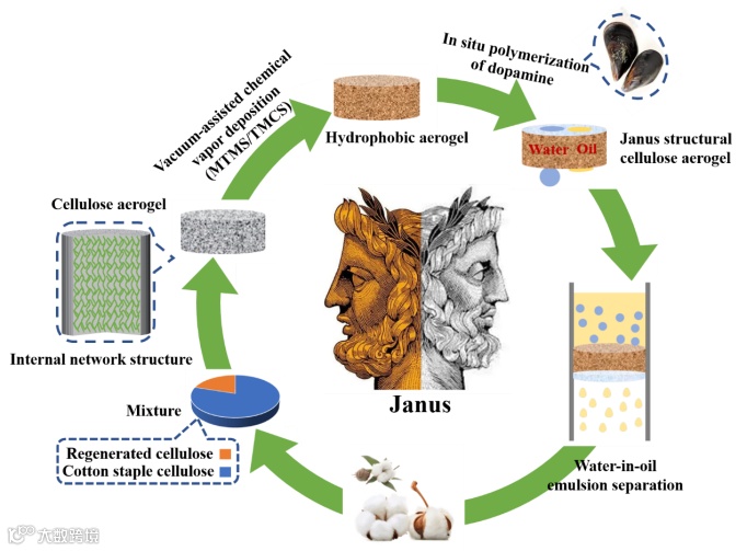 三维Janus纤维素气凝胶在油水分离方面具有广阔的应用前景。该工作对于新型三维Janus材料的构建和理解非对称浸润性三维Janus材料的分离机理具有重要的参考意义。