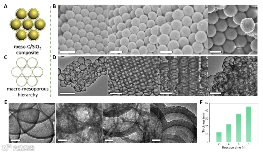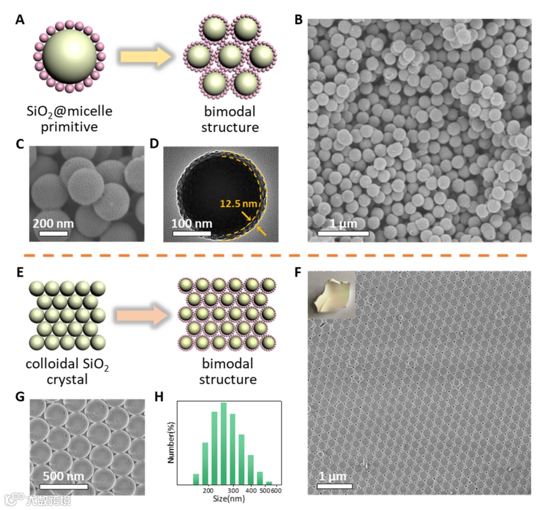该研究报道了一种“软”胶束(三嵌段表面活性剂F127/聚多巴胺)和“硬”刚性颗粒(胶体SiO2纳米球)相结合的协同“软-硬”次序组装策略,避免了目前亚稳态软胶束组装的不适配,实现了多元介观单元的集成组装制备二元有序孔结构,所得产物具有高度可控、有序的二元规律性及优异的孔隙率。