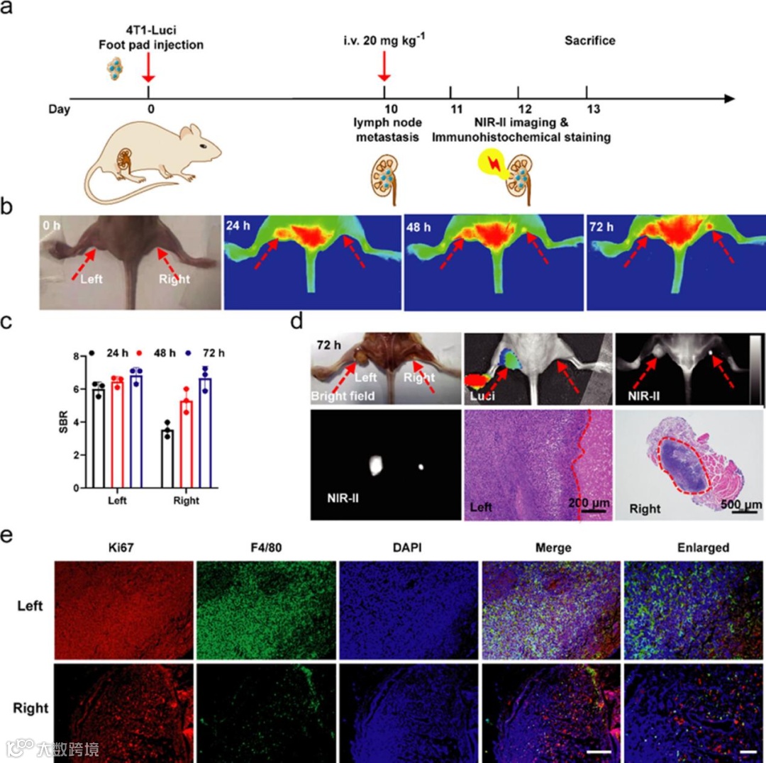 总之,该工作提出了一种通过追踪M2型巨噬细胞极化实现早期转移瘤高灵敏度检测的全新策略。通过靶向与极化的结合,提高了探针对M2型巨噬细胞检测的灵敏度,并首次在动物活体上动态观察到了M2型巨噬细胞与肿瘤转移的关联,为肿瘤转移的检测和治疗提供了新的思路。