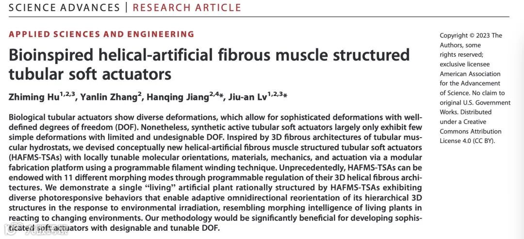 西湖大学吕久安团队《Adv. Mater.》:开发出高性能人工肌肉微纤维制备新技术