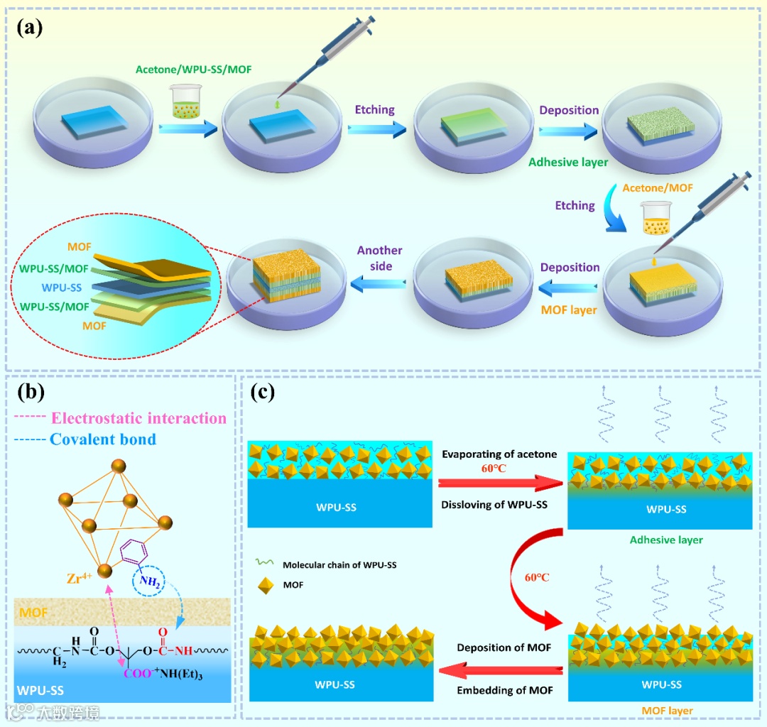 图2. WPU-SS-MOF复合材料的制备流程及原理图