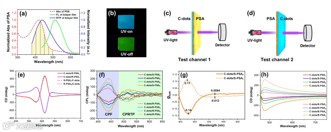 图3. 碳点/手性螺旋聚合物复合膜的光学、手性及CPL性能表征
