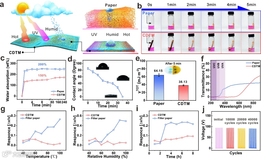 随着摩擦纳米发电机(TENGs)在分布式能源收集和自供电传感等领域的快速发展,适应复杂气候变化的摩擦电材料开发与利用受到了越来越多的关注。然而,传统聚合物材料制备的TENG在实际应用中面临高温、高湿等极端环境的干扰,导致其输出性能不稳定。摩擦电材料在极端环境的下兼顾输出的稳定性与高效性,仍然是亟待解决的关键问题。