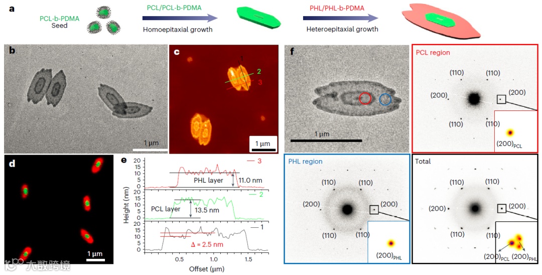 嵌段共聚物自组装在近些年取得了飞速的发展,制备的功能材料被广泛应用于各个领域。纳米材料的性能不仅与材料的组分,更与多尺度下的组分序列结构有着密切关系。制备形貌规则、尺寸可控、结构可调的纳米材料一直是自组装领域内的重要问题,“我们能推动自组装多远”被列入世界前沿125个科学问题名单。最近发展的活性结晶驱动自组装是制备一维(1D)和二维(2D)纳米结构的有效方法,该过程通常被认为遵循结晶性嵌段共聚物“附生生长”的机理。因此附生结晶是结晶驱动自组装过程的关键要素,如何从高分子结晶的角度深入研究结晶驱动自组装的微观机制是精准构筑二维纳米材料结构的关键。