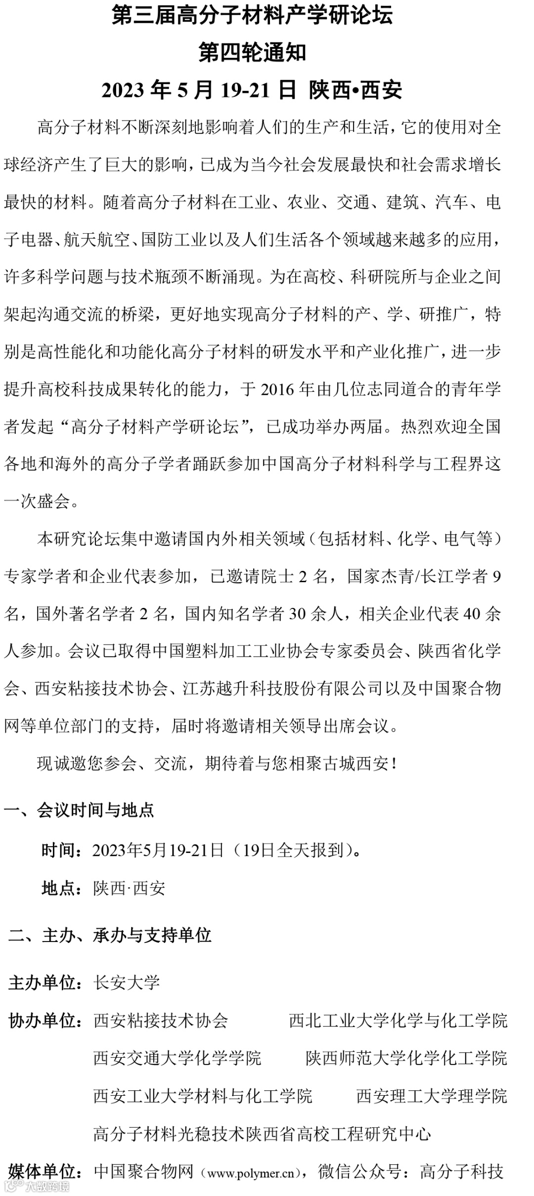 欢迎专家学者提供稿件(论文、项目介绍、新技术、学术交流、单位新闻、参会信息、招聘招生等)至info@polymer.cn,并请注明详细联系信息。高分子科技®会及时推送,并同时发布在中国聚合物网上。