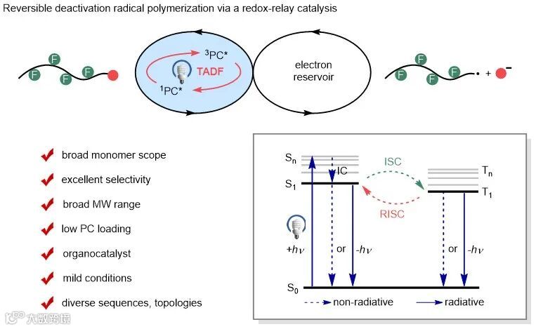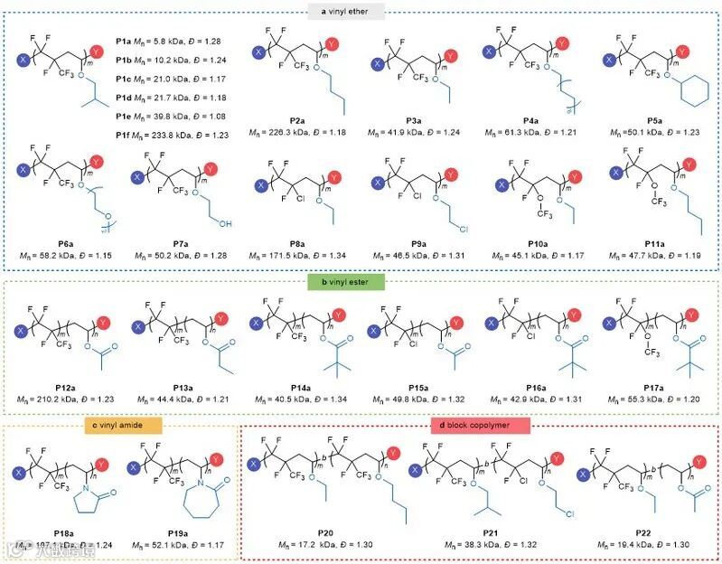 氟原子半径小、电负性强、碳−氟键稳定,这些特点让氟聚合物具有许多独特性质,例如耐热、耐候、耐腐蚀性强,低表面能,低介电常数,低折光指数等,在医疗、航空航天、通讯、建筑、化工等领域取得了重要应用。至上个世纪四十年代以来,通过含氟烯烃自由基聚合反应,研究者获得了大量高性能含氟聚合物,带有商品牌号就达到了数百种之多。然而,含氟烯烃的传统聚合方法难以对链增长过程施加调控,难以抑制自由基副反应,对调控氟聚合分子量、化学结构带来局限。此外,传统方法需高温高压聚合条件(在俄罗斯科学院索科洛夫等人的聚合方法中,甚至采用了1000个大气压),对普通实验室定制化合成氟聚合物带来不便。近年来,结构精准的氟聚合物在新能源、微电子、生命医药等方向展现了突出性质,发展新方法解决氟聚合物可控合成困难极具应用前景。