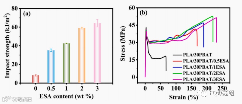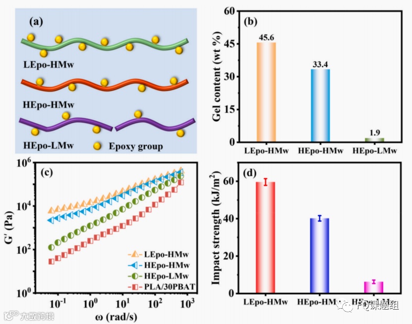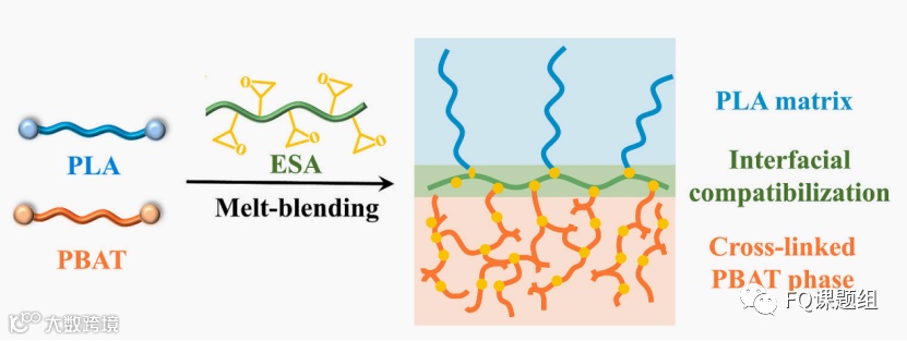 与柔性高分子共混是改善PLA韧性的一条简单而有效的策略,其中,价格低廉的生物可降解聚对苯二甲酸—己二酸丁二醇酯(PBAT)被认为是一种极具应用前景的PLA增韧剂,在增韧PLA时不会影响其宝贵的生物降解性。然而,由于PBAT与PLA的相容性差,导致相结构粗大、界面粘附很弱,对PLA基体表现出很低的增韧效率。因此,增容是充分实现PBAT对PLA高效增韧的关键。