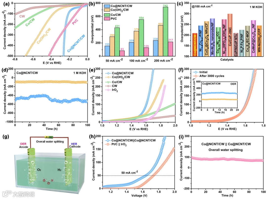 图4 Co@NCNT/CW催化剂的电解水制氢性能
