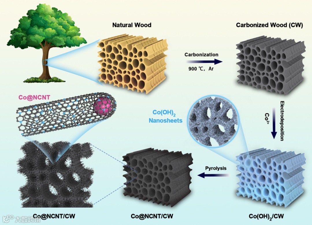 图1木材衍生的单片铠甲催化剂制备示意图