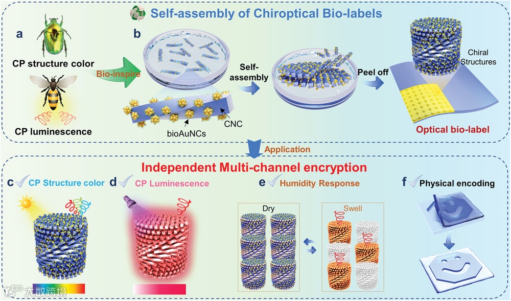 图1:多通道加密的手性光学生物标签的自组装示意图