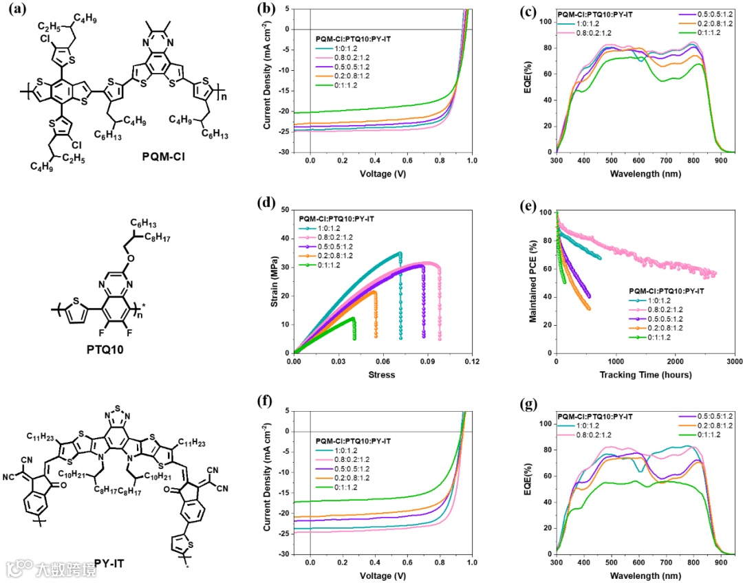 1、最优三元全聚合物体系达到18.45%的记录PCE,且在MPP追踪下于2000小时运行后,仍保持>60%的初始效率。
