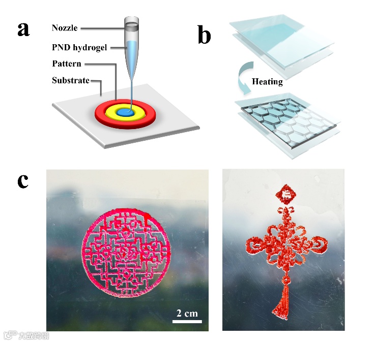 大多数智能窗户在工作状态下都是不透明状态,损失了可视化功能。该团队提出一种平衡可视功能和太阳光调节能力的新策略,借助3D打印技术构筑了网格状或图案化智能窗户,首次实现了具有可视功能和太阳光调节能力的水凝胶智能窗户(图4)。该策略可应用于开发具有文化特色的智能窗户,将窗花、中国结和文创作品等文化元素与智能窗户集成,具有广泛的应用前景。