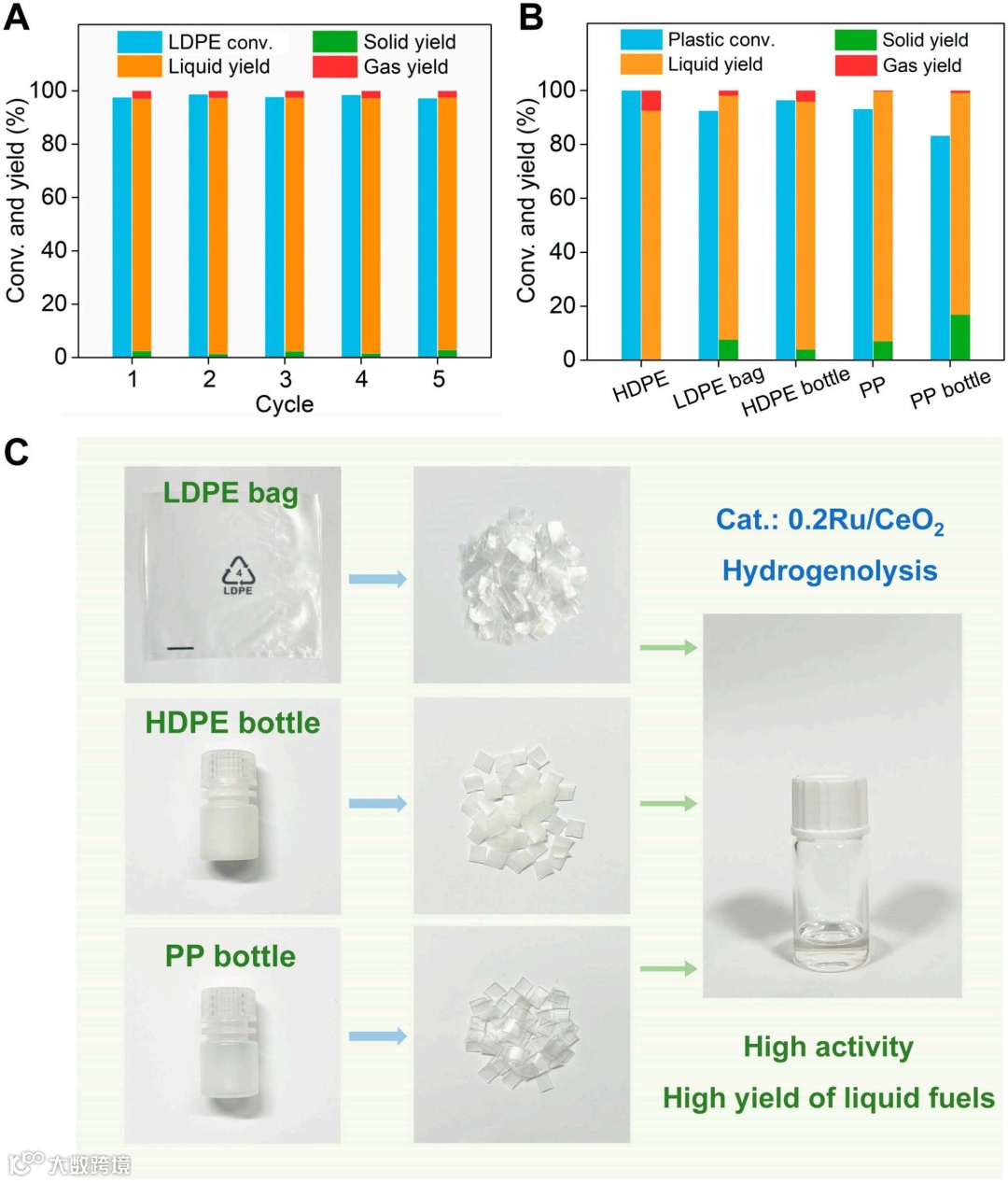 我国每年生产塑料总量已搞定8000万吨,其中聚烯烃塑料已成为需求量和使用量最大的塑料种类,然而其回收率仍低于20%。相比于聚酯、聚酰胺等塑料,聚烯烃产品在自然界中存留时间更长,过量排放废旧聚烯烃制品严重威胁自然环境和人类健康。因此,亟需开发新型高效且增值的回收策略。