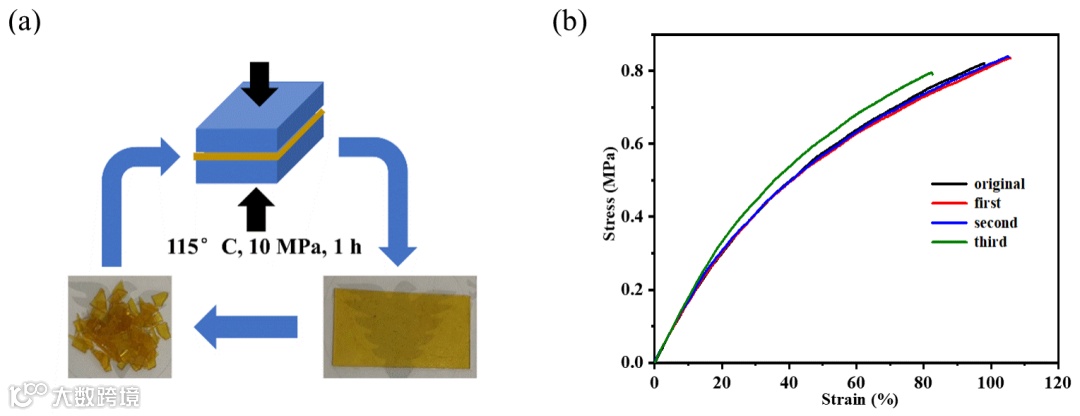图3. 蠕变-回复(a);亚胺键交换反应示意图(b)