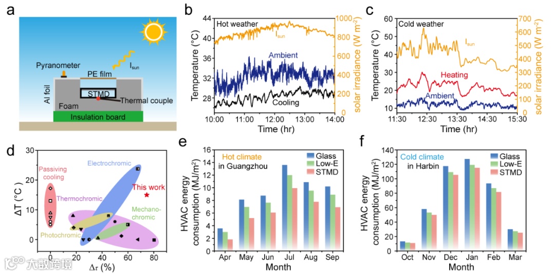 保持适宜的室内温度对农业、工业生产和日常生活都至关重要。常规热管理设备,包括空调,风扇或地暖系统等,需要输入大量的外部能量来调节室内温度,此类温度调节装置所消耗的能耗超过建筑总能耗的50%,这与全球碳中和的目标相悖。因此,迫切需要开发低碳排放的温度管理方法。
