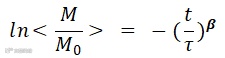 凝聚态液体物质在低温区会过冷冻结偏离平衡态,进入到玻璃态。在时间依赖性方面,应力松弛偏离了反映线性黏弹性的Debye松弛,其应力模量M随时间t的变化可通过KWW指数β修正来拟合Kohlrausch-Williams-Watts (KWW)松弛方程: