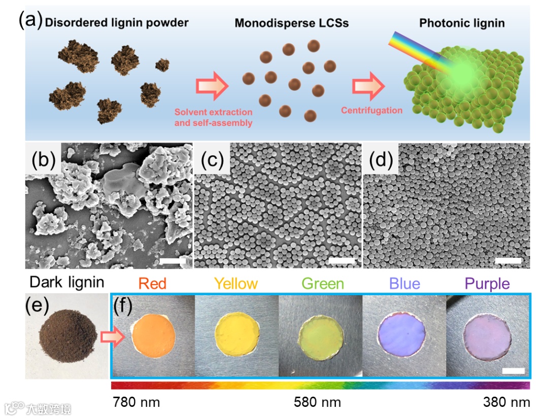 光子材料具有独特的光学性能、环境响应性能、化学稳定性能,其在光学、生物医学和能源等领域具有巨大应用价值。随着全球环境问题和人类健康需求日益增加,利用天然高分子作为原材料,开发绿色可持续、生物相容性好、生物可降解的环境友好型光子材料已成为如今先进光学材料的重要研究方向。木质素是自然界储量极为丰富的生物质资源,具有优异的生物相容性、热稳定性、抗紫外和抗氧化性,有望成为制备天然高分子基光子材料的重要原料。然而,木质素分子易聚集形成无规聚集体,使其在构筑光子材料所需的有序结构时面临巨大挑战。