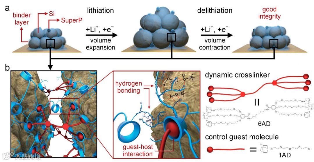 图2 锂离子电池硅阳极表面基于主客体相互作用的动态交联聚合物粘合剂