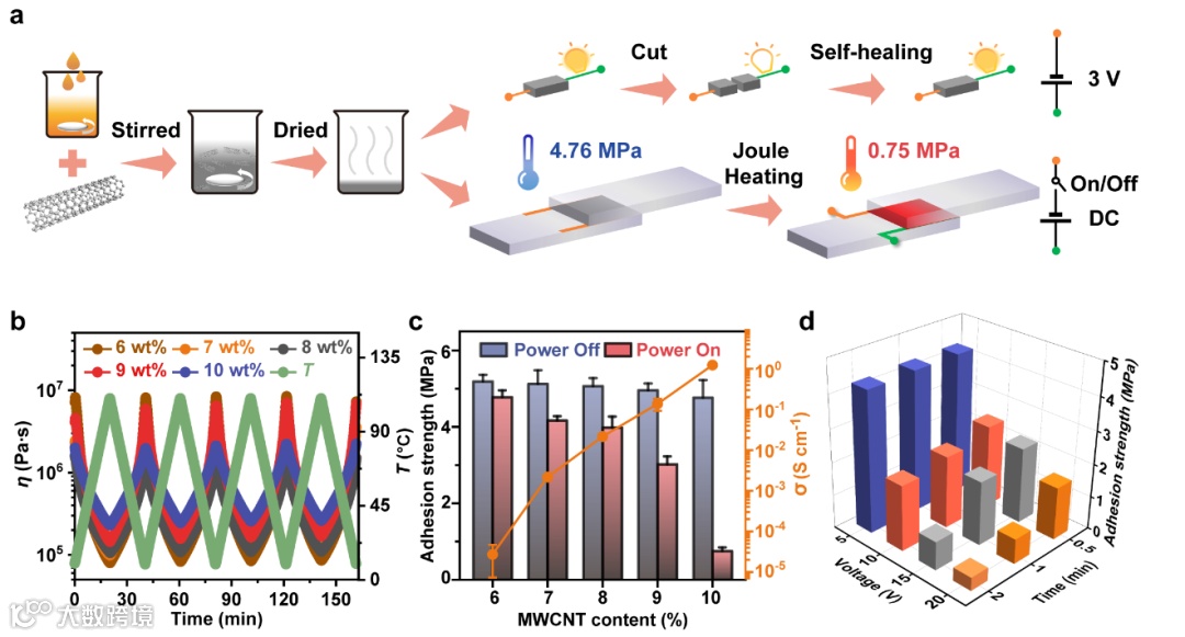 图4 基于离子液体的超分子聚合物粘附材料与多壁碳纳米管结合制备功能性复合胶粘剂