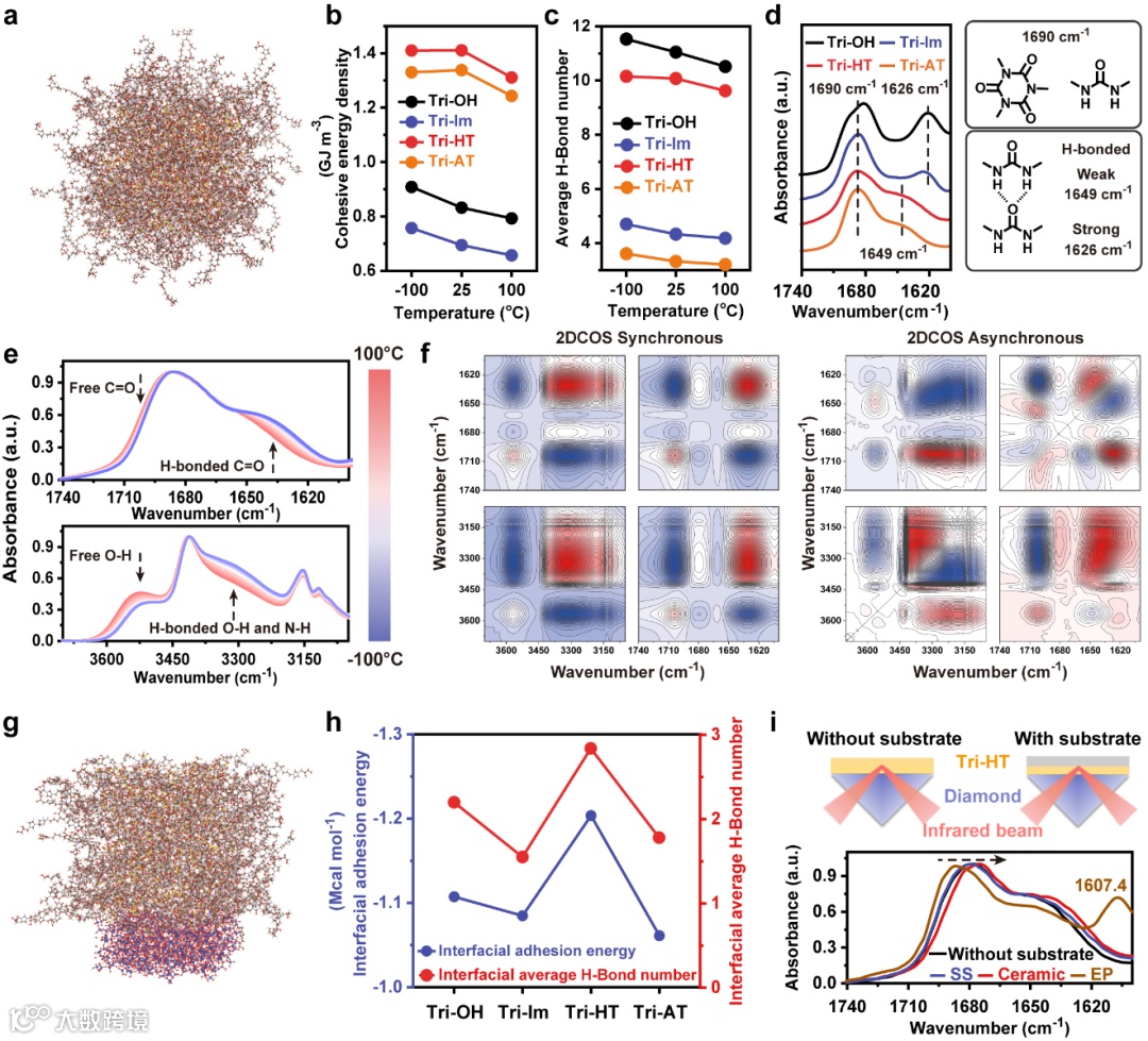胶粘剂,一般指能将两种及其以上材料连接在一起,固化后连接处具有一定强度的物质。大量研究表明,胶粘剂的粘接强度和胶粘剂与被粘物之间的作用力以及胶粘剂分子之间的作用力有关。传统胶粘剂一般采用聚合物作为有效成分。然而,高分子量的聚合物胶粘剂在使用时通常难以实现良好的界面浸润效果,并且易于形成较厚的粘接层,在造成资源浪费的同时还限制了其在柔性器件中的应用。将低分子量有机物直接作为胶粘剂使用可以巧妙规避传统聚合物胶粘剂制备和应用过程中出现的上述问题。尽管如此,低分子量有机物相较于聚合物相对较弱且难以平衡的内聚强度和界面粘附强度一直是阻碍其应用于胶粘剂领域面临的重大挑战之一。