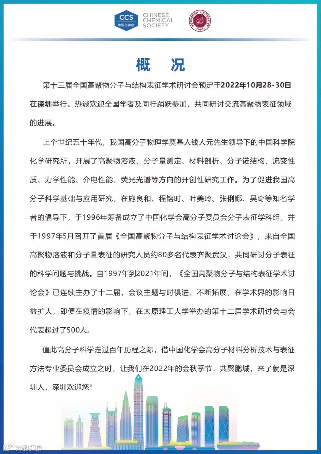 点击下方“阅读原文”可下载《第十三届全国高聚物分子与结构表征学术研讨会第二轮通知》。