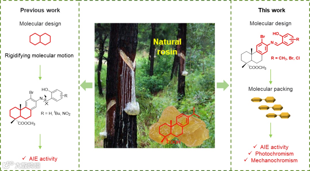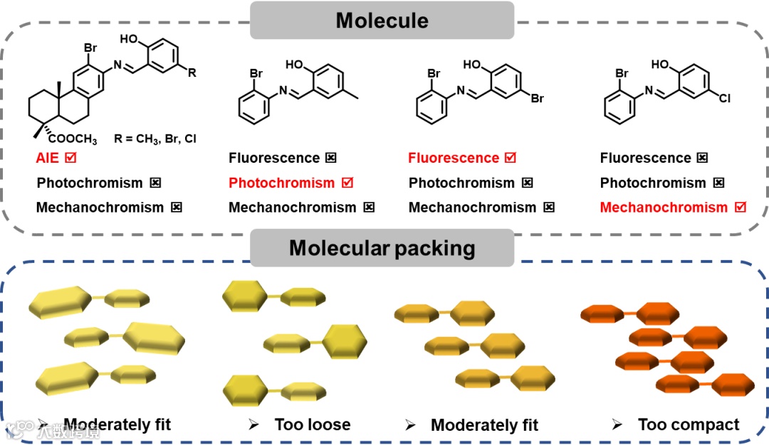 图2:从分子设计和堆积设计两个角度对松香基BioAIEgen进行设计